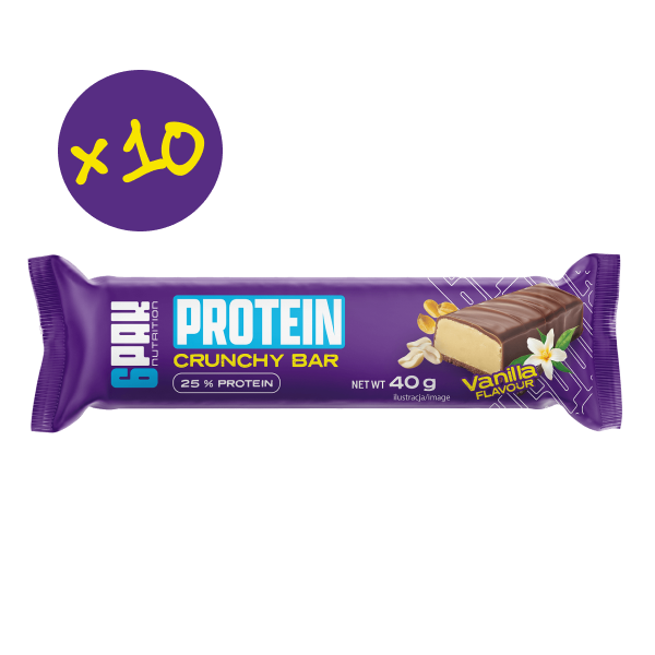 Na dodatek wysokobiałkowy. Taki właśnie jest PROTEIN CRUNCHY BAR o smaku waniliowym. Na pewno dołączy do grona Twoich ulubionych batonów. Zwłaszcza, że jego skład bazuje na WPC, czyli koncentracie białek serwatkowych. W składnikach znajdziesz substancje słodzące, ale bez aspartamu. Produkt nie zawiera również syropu glukozowo-fruktozowego. Ten baton to kwintesencja przekąski wysokobiałkowej: kompaktowa, pyszna i bazująca na wysokiej jakości składnikach.
