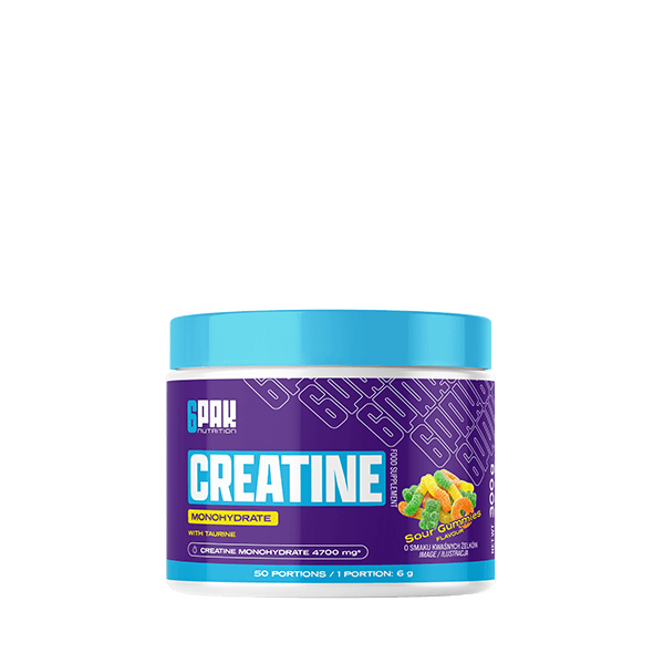 Monohydrat kreatyny z dodatkiem tauryny w proszku od 6PAK, dostępny w pięciu wersjach smakowych. Kreatyna zwiększa wydolność fizyczną w przypadku następujących po sobie krótkich, bardzo intensywnych ćwiczeń fizycznych.